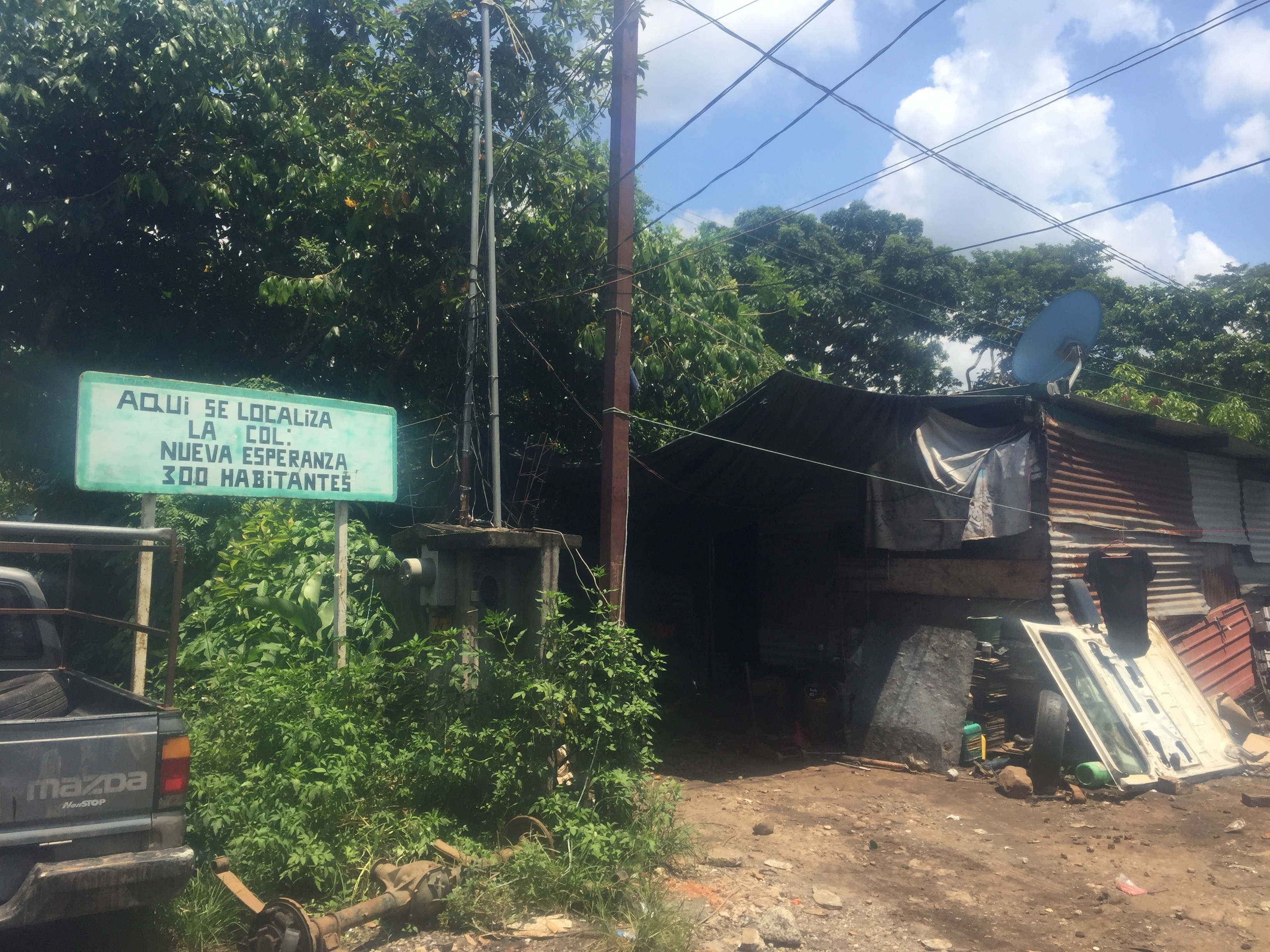 Sign marking Nueva Esperanza on the outskirts of Tapachula. Pic by Ann Deslandes, September 2019