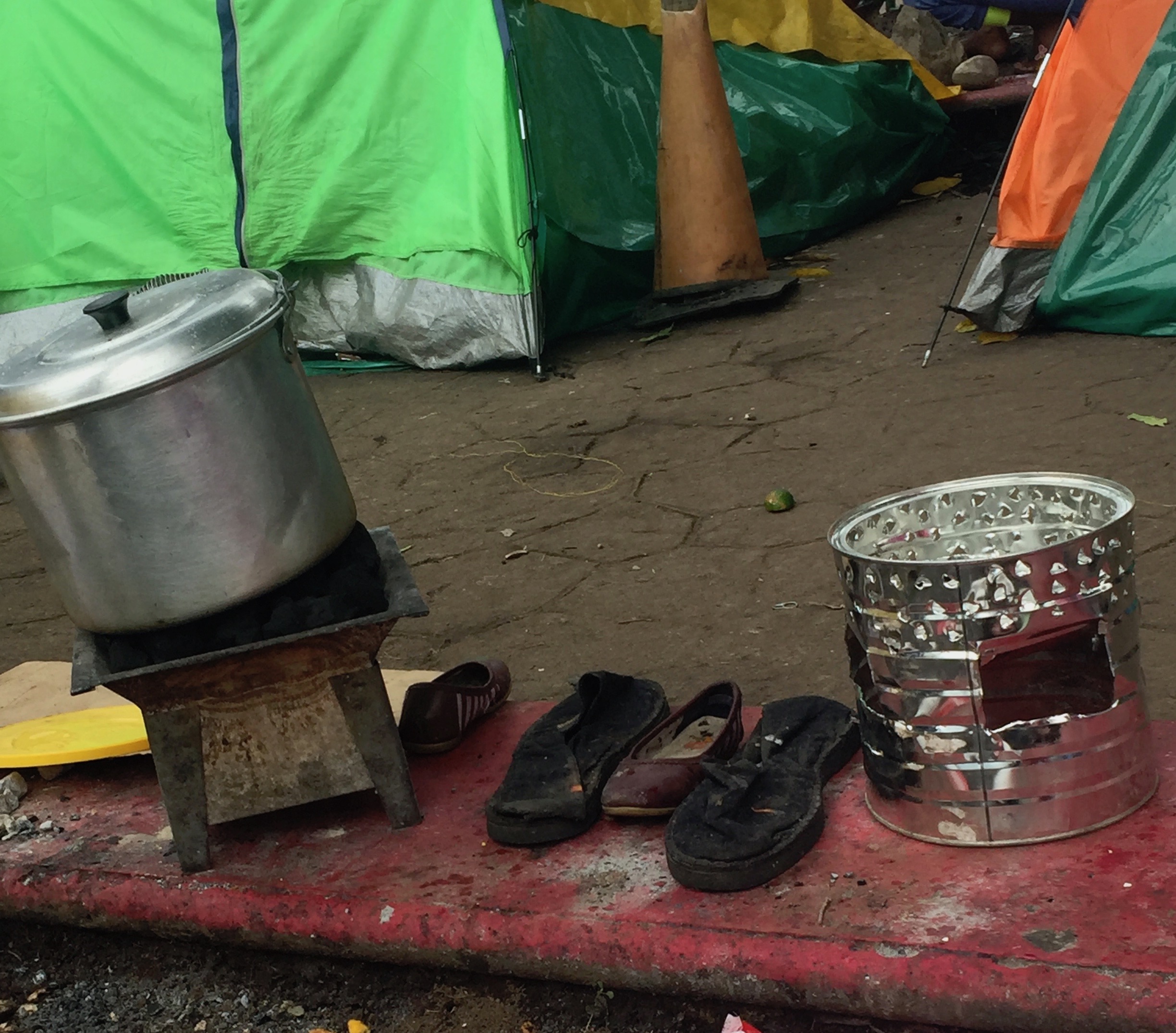 Cooking materials and drying wet shoes, Tapachula. Pic by Ann Deslandes, September 2019.